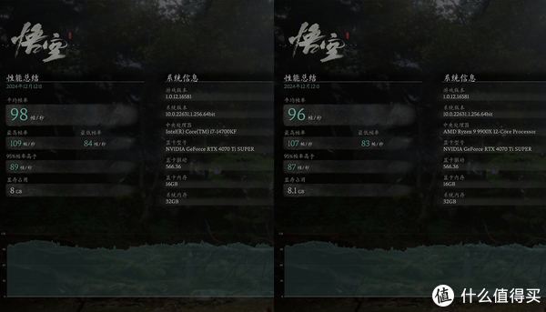 当同是使用影驰RTX4070Ti Super金属大师显卡配置,以及相同的画面参数设置之下,酷睿i7-14700KF的平均帧率比起R9 9900X处理器要高2FPS,后者的平均帧率为96FPS,最低帧为83FPS,测试过多款大型单机游戏,R9 9900X处理器在平均帧率上会低那么2~4FPS。