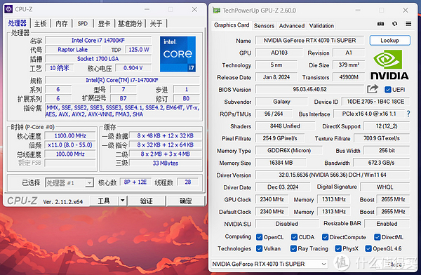 从个人角度来说,对于这类沉浸式大型单机游戏,4K超高清画面相比2K高刷画面对视觉感知更强,然而,4K分辨率高特效的画面对于硬件性能压力骤升,不得不选择性能更强的处理器与显卡,另外,2025年还有更多重磅新游戏发售,需要预留足够的性能接踵而至的游戏大作,本次装机的两个核心配置,分别是英特尔酷睿i7-14700KF处理器与影驰RTX4070Ti Super金属大师显卡。